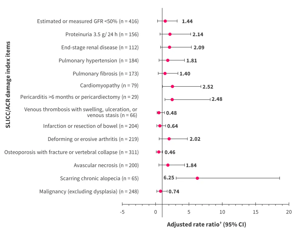 CI, confidence interval; SLICC/ACR DI, Systemic Lupus International Collaborating Clinic/revised American College of Rheumatology damage index. |