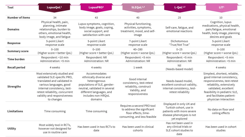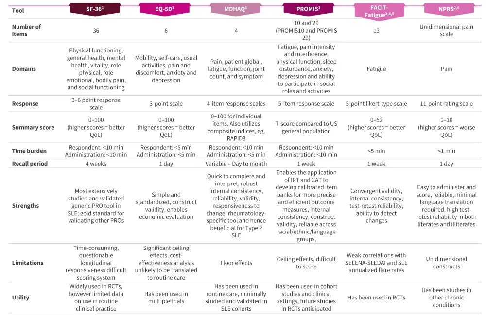 Currently, the available PRO tools for measuring HRQoL in patients with SLE include:1