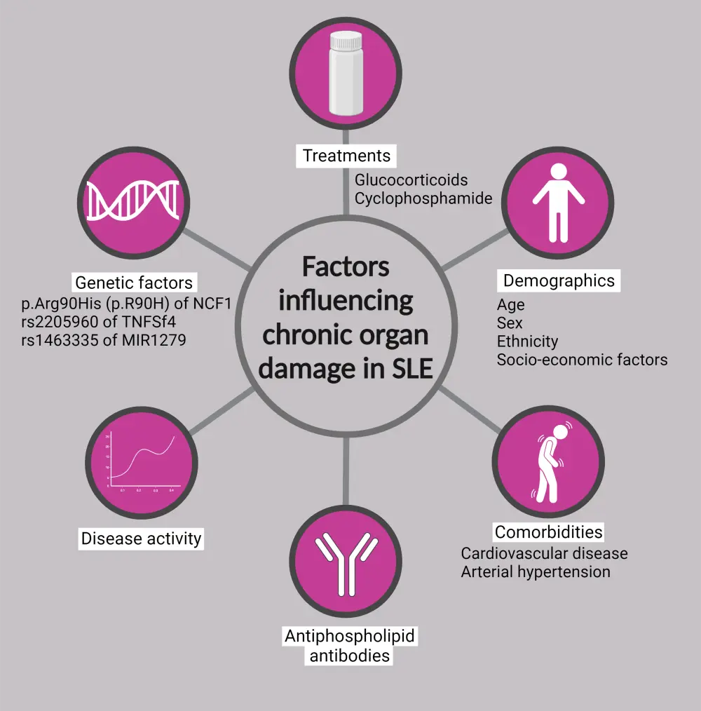 As depicted in Figure 1, there are several contributing factors to damage accrual in patients with SLE.