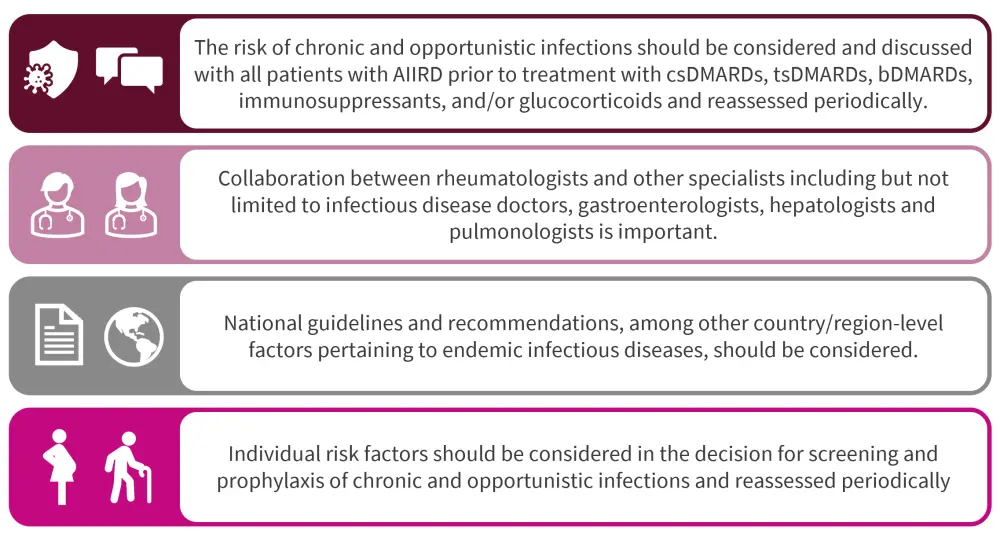 Figure 2. 2022 EULAR recommendations for prevention of opportunistic and chronic infections in adults with AIIRD*