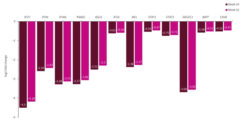 Figure 1. Most significantly downregulated genes by anifrolumab vs placebo*