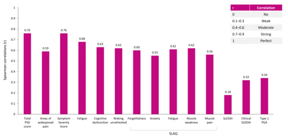 PGA, physician/provider global assessment; PSD, Polysymptomatic Distress Scale; SLAQ, Systemic Lupus Activity Questionnaire; SLE, systemic lupus erythematosus; SLEDAI, SLE Disease Activity Index.