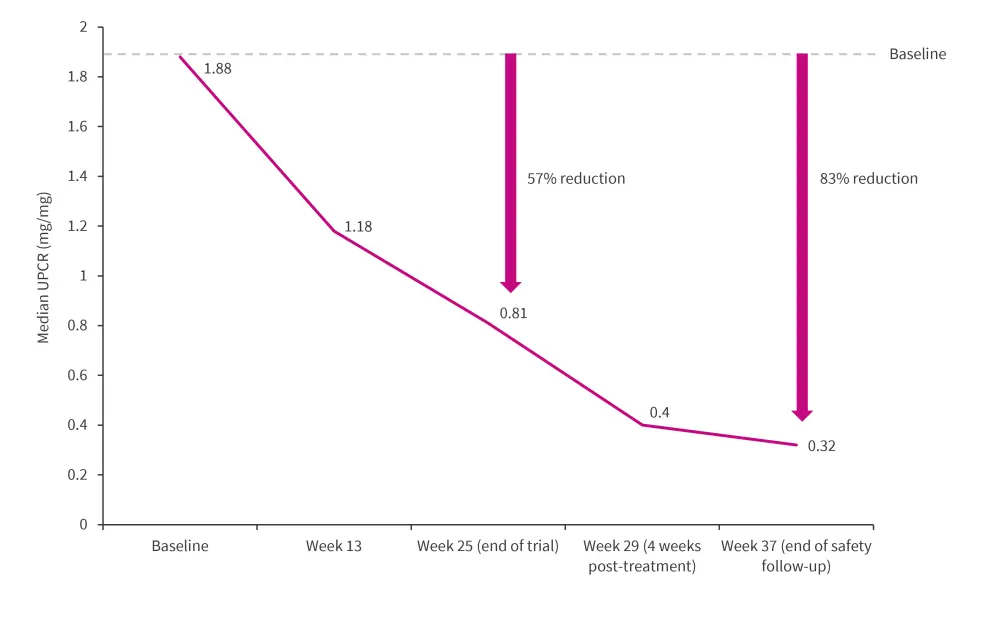 The median UPCR from baseline to Week 37 is shown in Figure 2.